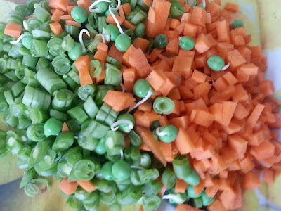 Wash and cook Cauliflower and cabbage with garlic, onion and salt in 1and a half cup of water.